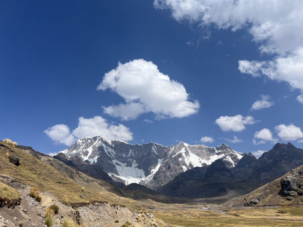 Este día se vive como uno de los más espectaculares de todo el trekking. La ruta atraviesa altos pasos de montaña, comenzando por el Paso Puka (4,870 m), desde donde se abre un panorama impresionante de glaciares colgantes, extensos valles altoandinos y lagunas multicolores que contrastan con los tonos ocres de la cordillera.