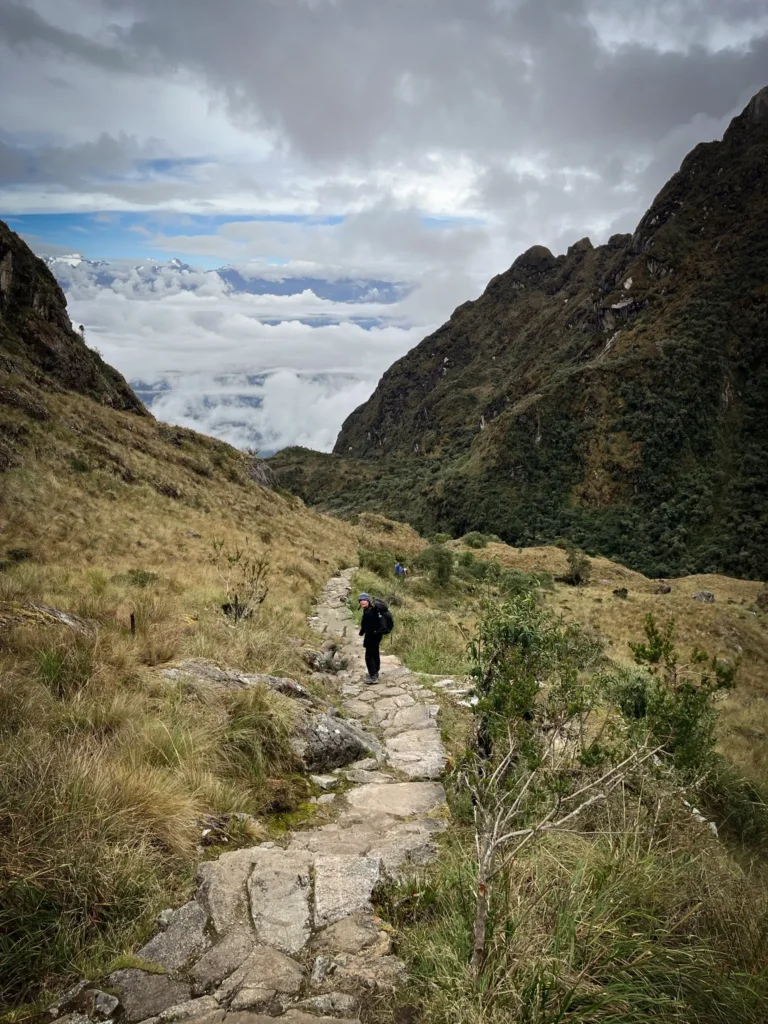 A partir daí, o percurso estende-se por 43 quilómetros (26 milhas), atravessando montanhas, selvas e vales, até chegar ao mítico Inti Punku (Porta do Sol), onde os caminhantes têm a primeira vista da cidade sagrada de Machu Picchu.